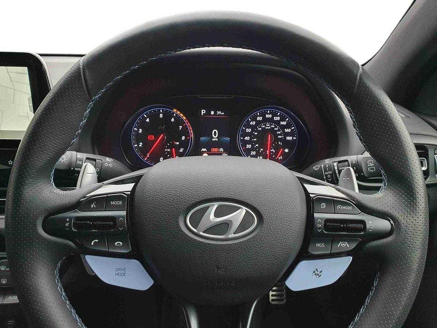 - N drive mode steering wheel button in blue